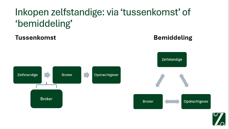 Bemiddeling is transparanter. Dan sluiten opdrachtgever en zzp’er direct een overeenkomst en factureert de broker alleen de bemiddelingsfee. “Dat maakt het eenvoudiger om de feitelijke samenwerking te toetsen.”